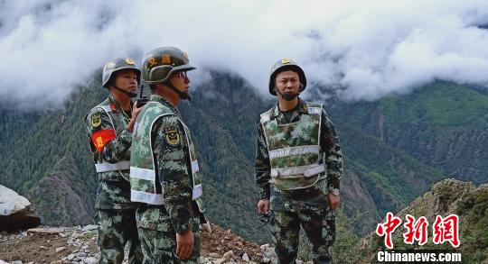 圖為8月1日,駐藏武警某部交通第三支隊養(yǎng)護五大隊的官兵在研究搶通方式?!罾^明 攝