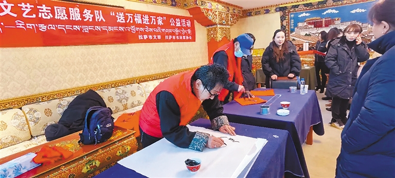 拉薩市文聯(lián)書法家協(xié)會開展送萬福進(jìn)萬家公益活動。