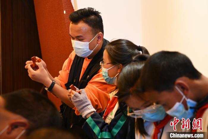此次展覽的首場(chǎng)講解由拉薩市北京實(shí)驗(yàn)中學(xué)學(xué)生承擔(dān)?;顒?dòng)還邀請(qǐng)了在校學(xué)生體驗(yàn)了古建榫卯組裝、北京古城池拼圖等社教活動(dòng)。