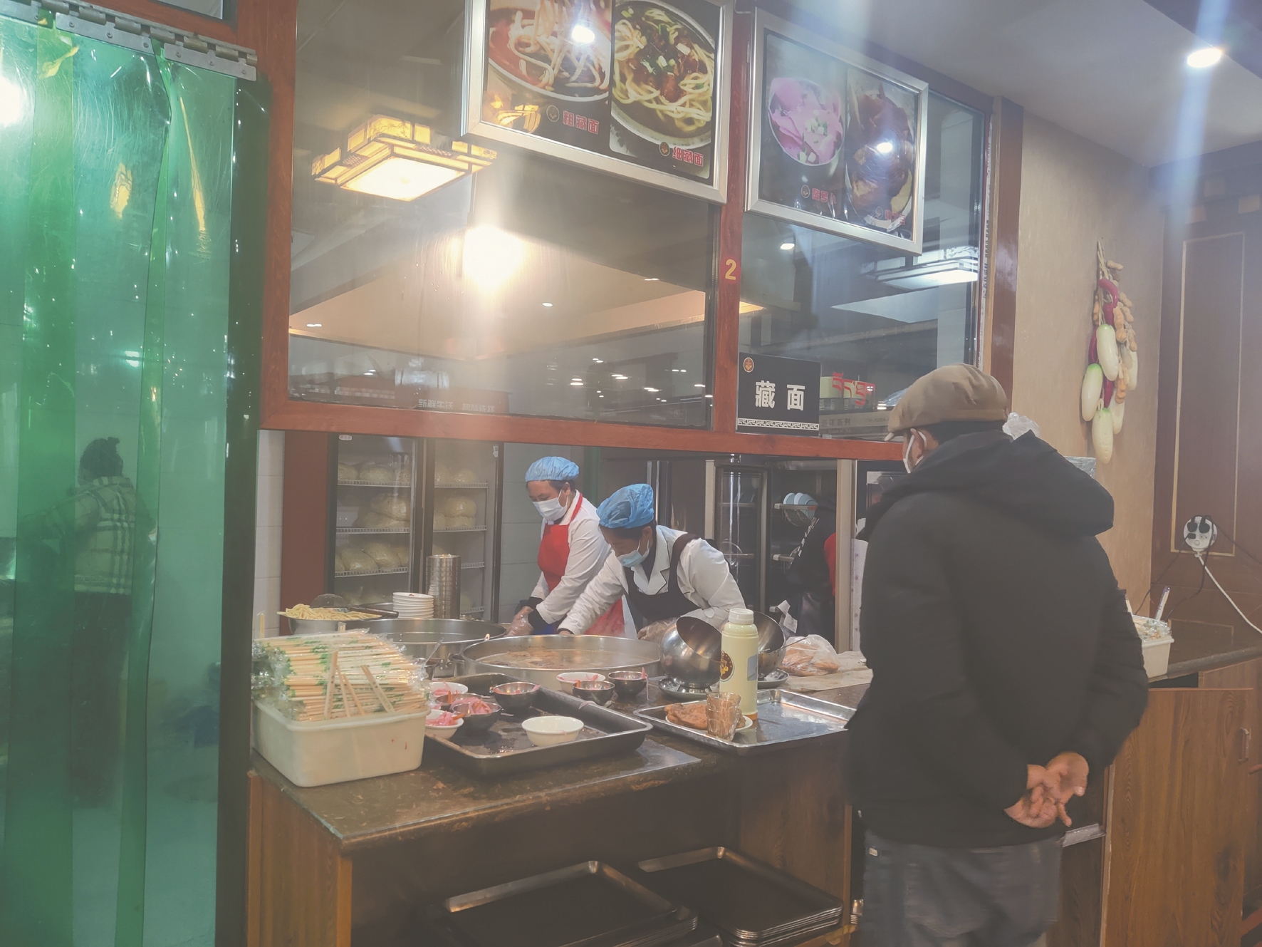 記者在桑曲茶館看到,店內(nèi)分為甜茶、藏面、蓋飯三個檔口,每個檔口由國定員工負責(zé),大家身著統(tǒng)一工作服,忙而不亂,有條不紊。各檔口均為透明玻璃窗,消費者能夠直接看到餐飲食品加工制作全過程。