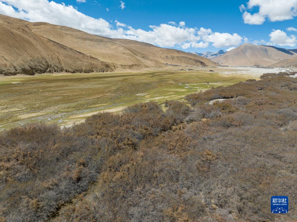 這是在珠峰國家級(jí)自然保護(hù)區(qū)內(nèi)拍攝的沙棘林和濕地(5月25日攝,無人機(jī)照片)。新華社記者 孫非 攝
