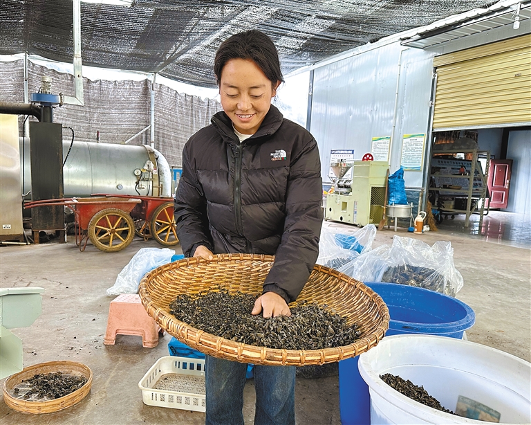 圖為格當鄉(xiāng)尼日卡林下資源合作社工作人員在篩檢木耳。記者 王敏 通訊員 郎玲 攝