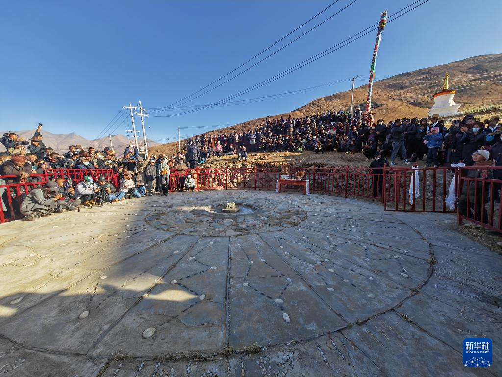 就在4天前,達(dá)布天文觀測(cè)臺(tái)附近圍著身著盛裝的村民。9時(shí)50分,陽光穿過測(cè)孔樓頂?shù)娜展獬隹?,直射?9米外的測(cè)光石上。這一刻,太陽、日光出口與測(cè)光石連成一條直線,標(biāo)志著拉薩河以東區(qū)域的春灌時(shí)間到來。