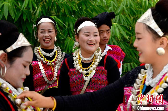 西藏自治區(qū)林芝市察隅縣位于青藏高原東南邊緣,南接緬甸和印度,是邊陲重鎮(zhèn)。在這深山峽谷間還居住著一個族群——僜人。僜人擁有獨(dú)特的語言,但由于人口少、沒有文字等原因,未被確認(rèn)民族歸屬。圖為8月24日,身著盛裝的僜人婦女。中新社記者 李林 攝