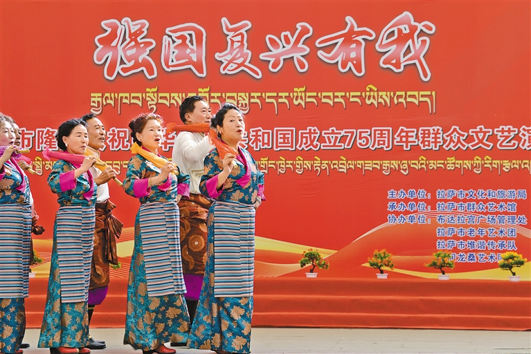 10月1日上午,“強國復興有我”群眾文藝演出在拉薩市宗角祿康公園舉行。記者 潘多 攝