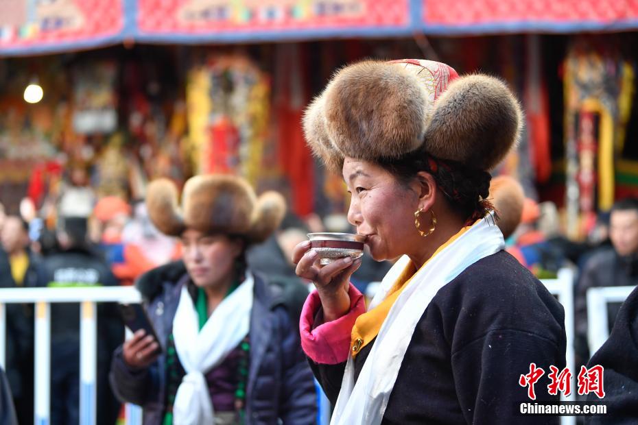 12月15日即藏歷十月十五日是藏族傳統(tǒng)的節(jié)日“白來日追”,俗稱“仙女節(jié)”、“白拉姆節(jié)”等。相傳藏傳佛教最高護法神之一班丹拉姆的女兒白拉姆,不顧母親的反對與赤尊贊私定終身,班丹拉姆一怒之下將赤尊贊趕到拉薩河南岸,規(guī)定二人僅每年的藏歷十月十五日相見。圖為一位藏族婦女品嘗青稞酒。