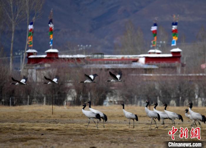 黑頸鶴是全球十五種鶴類中唯一在高原地區(qū)繁殖和越冬的鶴類,被譽(yù)為“高原神鳥”,屬中國國家一級保護(hù)動物。每年10月中下旬左右,黑頸鶴陸續(xù)飛抵雅魯藏布江中游河谷等地越冬。