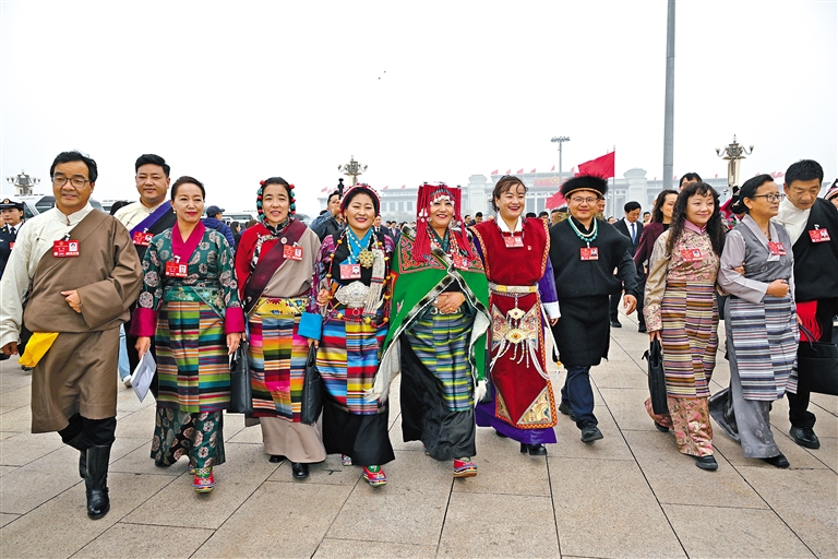 西藏全國(guó)人大代表滿懷信心步出會(huì)場(chǎng)。