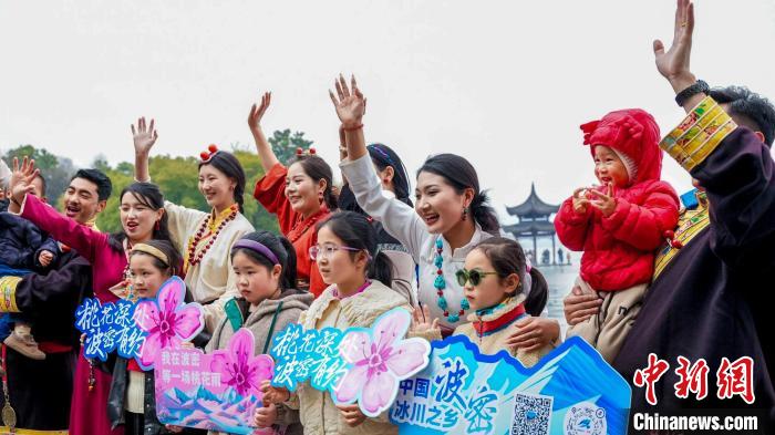 活動(dòng)當(dāng)天,身著彩云紋藏裝的波密兒女踏歌而來(lái),沿著斷橋、雷峰塔等西湖文化地標(biāo),開(kāi)啟流動(dòng)的藝術(shù)巡演。藏式廣袖輕揚(yáng)間掠過(guò)湖光,自發(fā)加入的游客與藏族演員即興共舞,在千年勝景中勾勒出民族交往交流交融的動(dòng)人圖景?;顒?dòng)現(xiàn)場(chǎng),熱情的藏族姑娘、藏族小伙為參與互動(dòng)的游客送上“桃花氣球”和文創(chuàng)禮品,將高原春日的印記留在江南水岸。