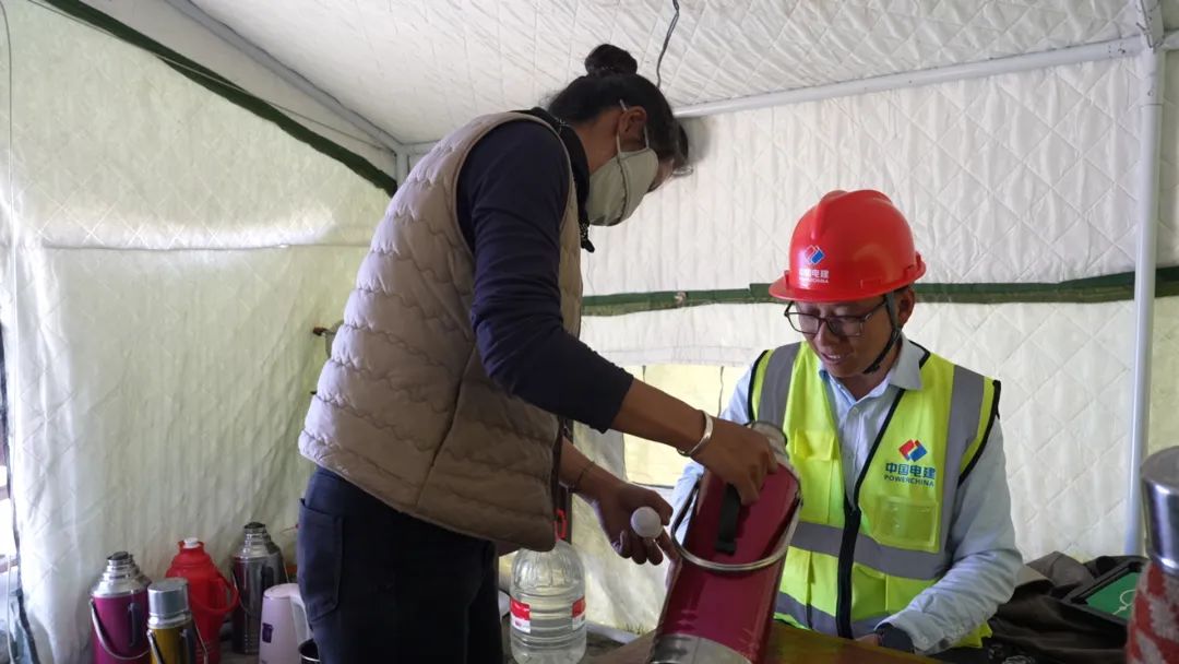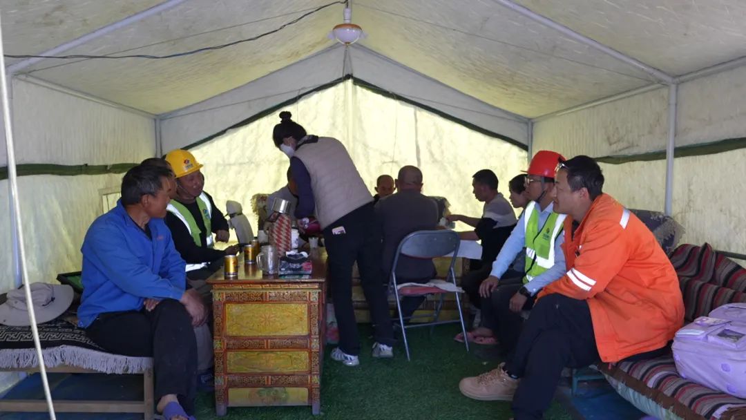 茶館主人巴桑,是村里有名的熱心人。看著施工人員為重建家園奔波,采購物資不便,她果斷在項(xiàng)目部生活區(qū)旁開起小賣鋪。與工人們熟絡(luò)后,她又搬來桌椅,搭起簡(jiǎn)易帳篷茶館,只為給異鄉(xiāng)人一個(gè)歇腳放松之處。