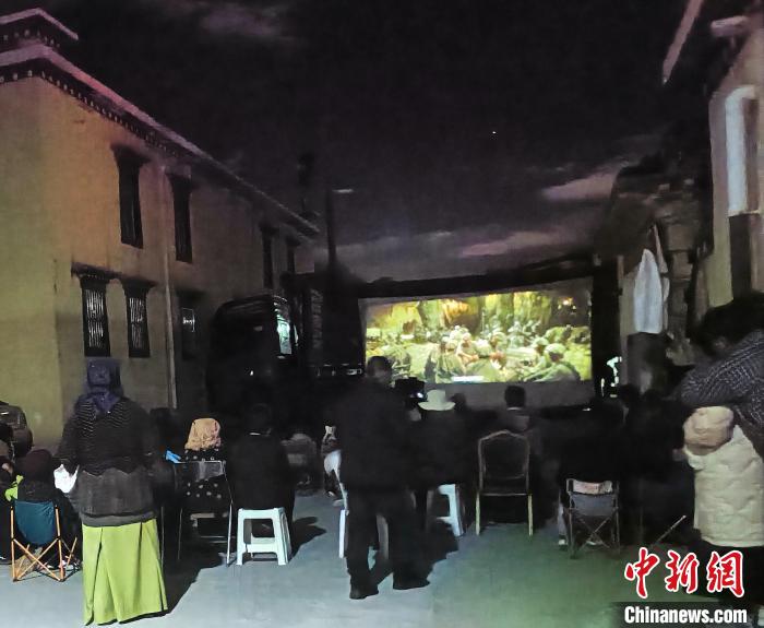 圖為村民在夜幕下觀看露天電影。達孜區(qū)委宣傳部供圖