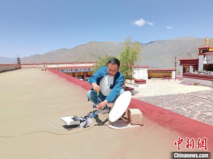 圖為工作人員正在安裝直播衛(wèi)星戶戶通設備。達孜區(qū)委宣傳部供圖