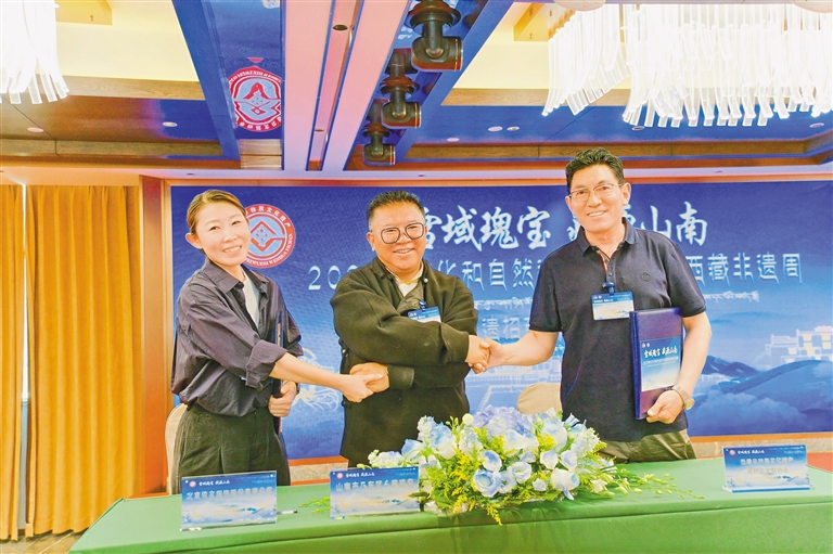 在全區(qū)非遺招商引資及項目簽約會上,4家企業(yè)負責(zé)人分別介紹公司發(fā)展歷程、市場前景、合作意向、未來計劃等情況。乃東區(qū)人民政府、乃東區(qū)文化和旅游局、西藏卓番林文化有限公司、北京依文服飾股份有限公司等一同簽訂了項目合作協(xié)議。
