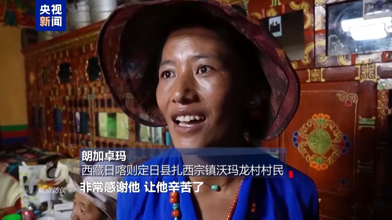 西藏日喀則定日縣扎西宗鎮(zhèn)沃瑪龍村村民 朗加卓瑪:獻(xiàn)給援藏的縣長(zhǎng),非常感謝他,他辛苦了。