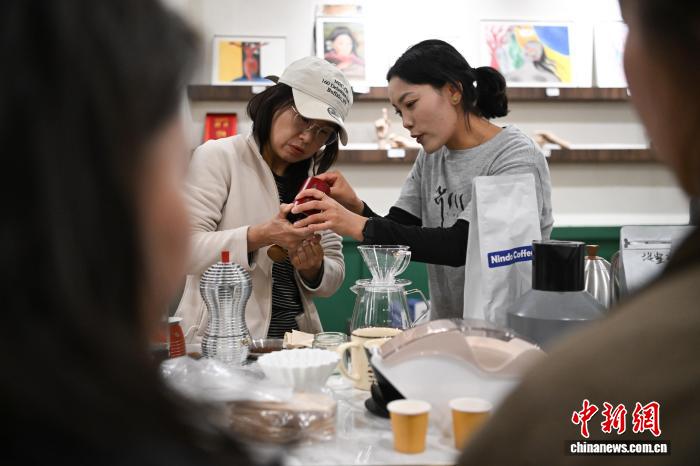 9月1日,2025年西藏自治區(qū)拉薩市第二期“青年夜?!闭介_班。圖為夜校學員在上咖啡制作課。中新社記者 貢嘎來松 攝