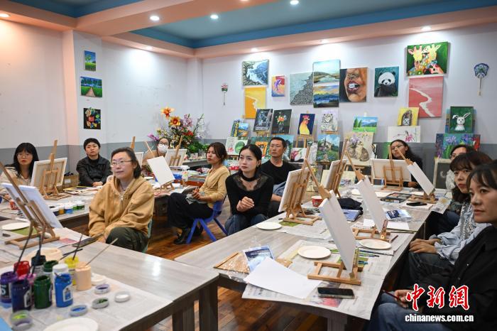 9月1日,2025年西藏自治區(qū)拉薩市第二期“青年夜?!闭介_班。圖為夜校學員在上美術課。中新社記者 貢嘎來松 攝