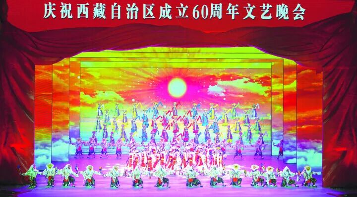 8月20日晚,慶祝西藏自治區(qū)成立60周年文藝晚會《雪域歡歌》在西藏大劇院舉行。晚會分為3個篇章,上篇《幸福的起點》《踏歌慶賀》《農(nóng)場五朵金花》等歌舞,展現(xiàn)了建設(shè)社會主義新西藏的生動場景;中篇通過情境歌舞《奔跑的高原》、歌曲聯(lián)唱《家鄉(xiāng)美》、配樂講述《厚愛》,表現(xiàn)了改革開放給雪域高原帶來的蓬勃生機(jī);下篇通過《新的征程》《嘎拉村的歡笑》《琴鶴齊鳴》等作品,勾勒出幸福新西藏的美好圖景。每一個節(jié)目都是西藏當(dāng)下發(fā)展的縮影,表達(dá)了對未來美好的展望。