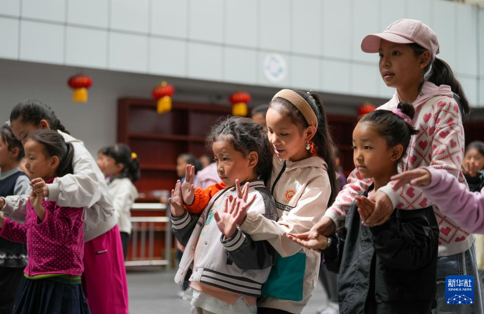 9月11日,在拉薩市實驗小學(xué),孩子們在練習(xí)藏戲。新華社記者 晉美多吉 攝