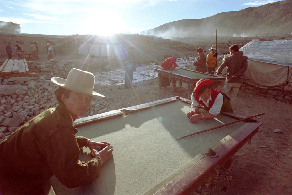 阿里地區(qū)普蘭縣的青年人在打臺(tái)球。 (1996年9月9日發(fā))