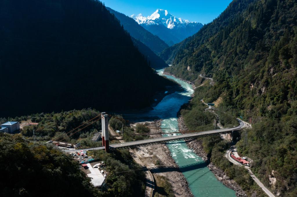 在西藏自治區(qū)林芝市波密縣拍攝的國(guó)道318公路通麥特大橋(2024年11月8日攝)。新華社記者 沈伯韓 攝