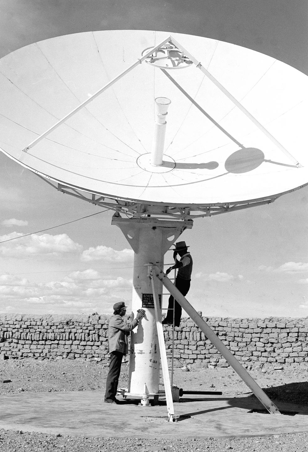 雙湖和文部辦事處在海拔5000米的地方分別建起了衛(wèi)星地面接收站,使當(dāng)?shù)啬撩窨梢允湛串?dāng)天中央電視臺(tái)播放的節(jié)目(1987年9月16日發(fā))。