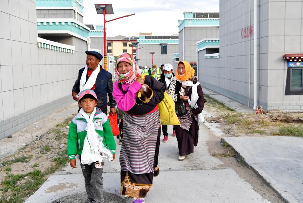 剛剛抵達(dá)森布日安置點(diǎn)的雙湖縣牧民正前往新家(2022年7月19日攝)。新華社記者 張汝鋒 攝