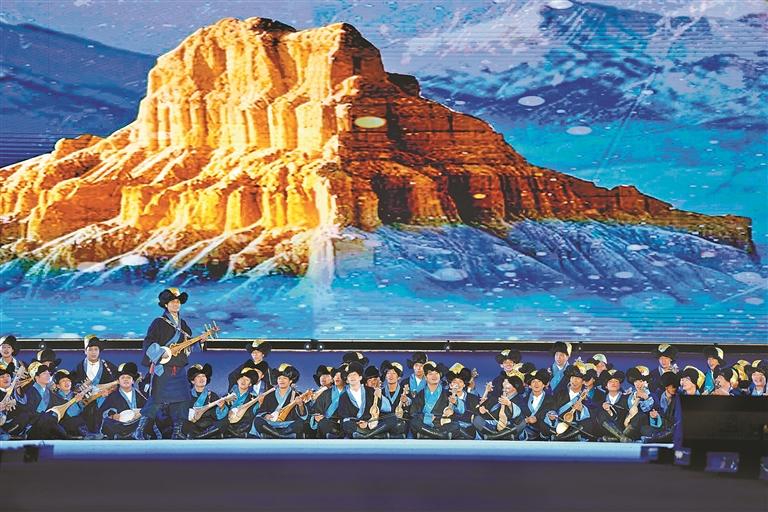 開幕式通過“線上直播+現(xiàn)場觀演”模式,為現(xiàn)場各界來賓、干部群眾及線上觀眾,呈現(xiàn)了一場內容豐富、形式多元、內涵深刻的視聽盛宴。此次演出時長約80分鐘,投入演職人員300余人次,共呈現(xiàn)13個特色節(jié)目。演出以弘揚優(yōu)秀傳統(tǒng)文化和鑄牢中華民族共同體意識為基調,大膽革新藝術表達形式,將“音、舞、詩、畫”巧妙融合,并鑲嵌濃郁的阿里地域文化元素,通過多元文化交融的舞臺敘事,生動詮釋中華民族“多元一體、和諧共生”的深刻內涵,實現(xiàn)歷史與人文的激情碰撞。