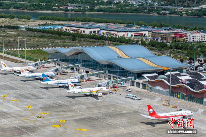 2025年6月,西藏林芝米林機場停靠航班。該機場現(xiàn)運營15條航線,通達(dá)北京、成都及廣州等9座城市。(中國民用航空西藏自治區(qū)管理局供圖)