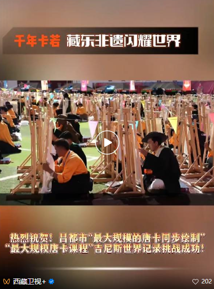 9月28日,由昌都市委、市政府主辦,卡若區(qū)委、區(qū)政府承辦的“最大規(guī)模的唐卡同步繪制”“最大規(guī)模唐卡課程”吉尼斯世界紀錄挑戰(zhàn)活動在津昌體育文化中心成功舉辦!來自全市各地的上千名唐卡畫師匯聚一堂,聆聽大師點撥、繪制唐卡作品,成功打破原世界紀錄,讓昌都成為“最大規(guī)模的唐卡同步繪制”“最大規(guī)模唐卡課程”吉尼斯世界紀錄保持者!