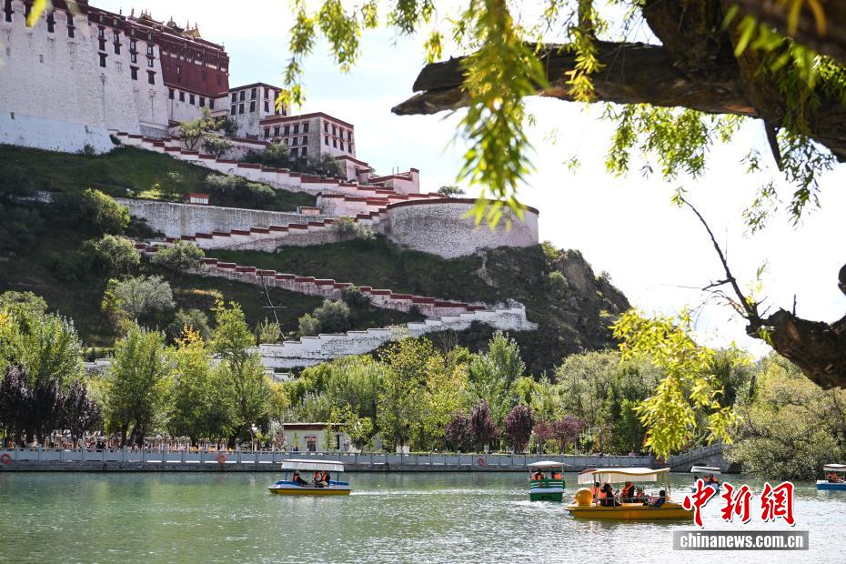 10月6日,西藏拉薩市宗角祿康公園人氣爆棚。人工湖畔游船碼頭前,游客有序排隊登船,各色游船在碧波上緩緩前行,與岸邊的秋景、遠(yuǎn)處的布達(dá)拉宮相映成趣。據(jù)悉,國慶假期,游船接待量較平日增長近三成,成為市民游客親近自然、歡度國慶的熱門選擇。中新社記者 貢嘎來松 攝