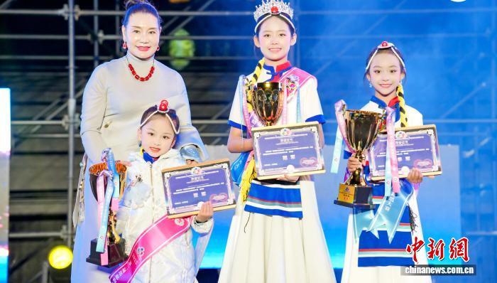 圖為“熱巴皇后”澤吉為第三屆“塔耶梅朵熱巴精靈”大賽冠亞季軍頒獎并合影。西藏自治區(qū)文化和旅游廳 供圖