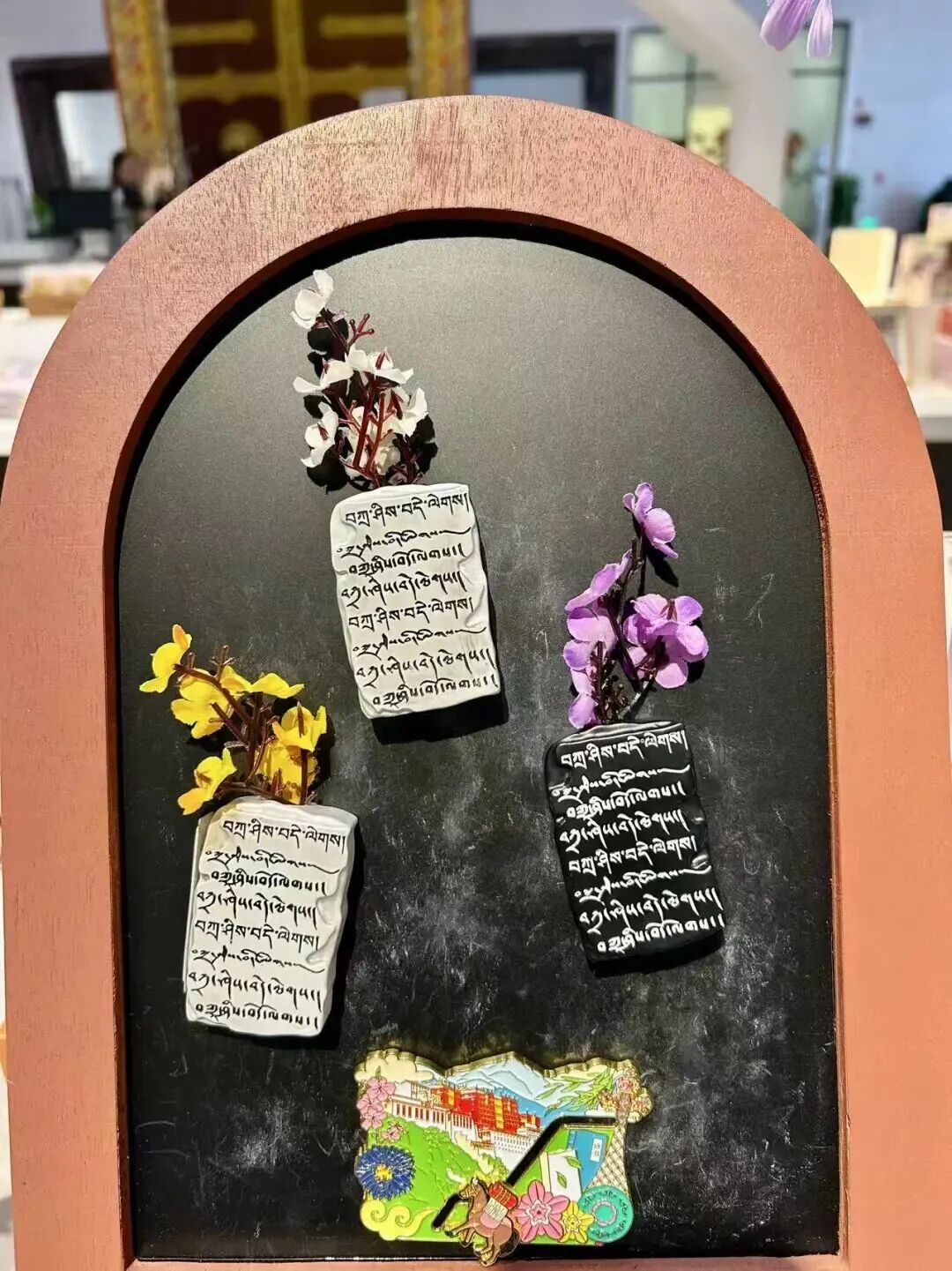 在社交平臺(tái)上,西藏博物館的花瓶款冰箱貼火出了圈。“必買”“太絕了”——網(wǎng)友們的評價(jià)道出了它的獨(dú)特魅力。黑白兩色的設(shè)計(jì),巧妙融入了插花功能,創(chuàng)意源自西藏傳統(tǒng)石刻藝術(shù)與吉祥祝福語?!霸鞯吕铡辈寤ū滟N,不僅是一件文創(chuàng)產(chǎn)品,更是對美好生活最真誠的祝愿。