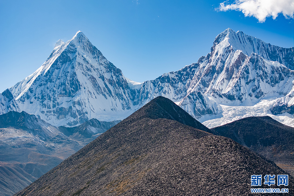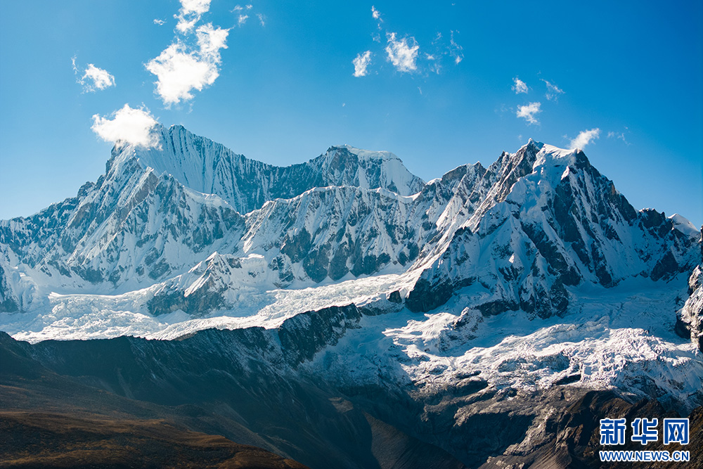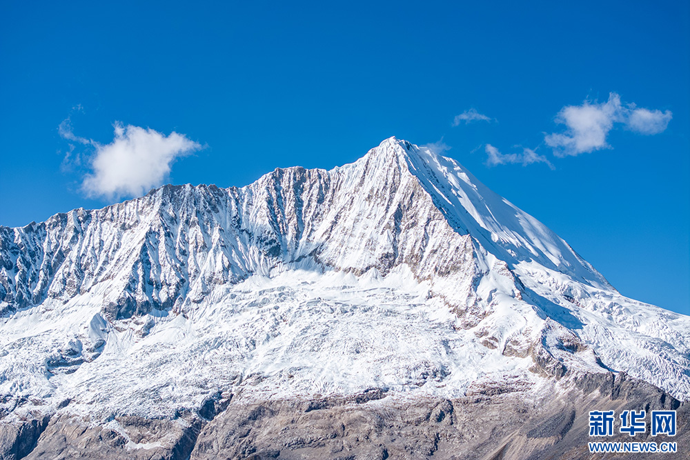 10月11日拍攝的庫(kù)拉崗日雪山(無(wú)人機(jī)照片)。新華網(wǎng) 旦增努布 攝