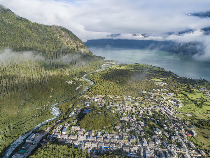 這是2023年7月20日拍攝的西藏林芝市工布江達(dá)縣錯(cuò)高鄉(xiāng)結(jié)巴村景色(無人機(jī)照片)。新華社記者 孫非 攝