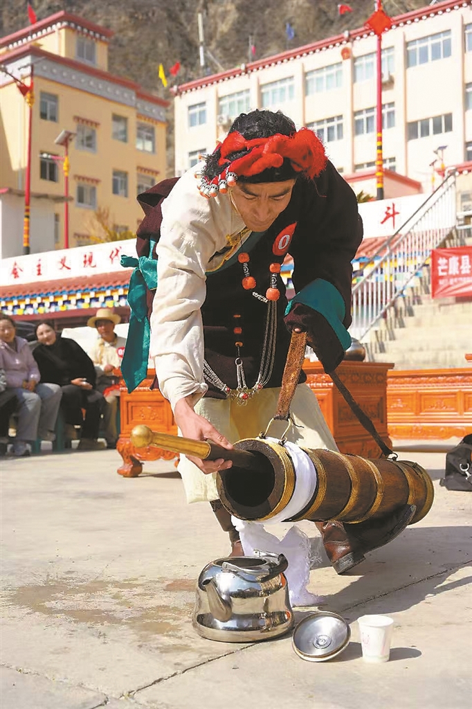 店主扎西旺堆熱情地向記者介紹店內(nèi)各種古樸美麗的物件,他說:“其實(shí),傳統(tǒng)酥油桶依然活躍在當(dāng)代生活中,在許多重大節(jié)日和場(chǎng)合,人們依舊會(huì)使用傳統(tǒng)酥油桶。因?yàn)樗粌H是酥油茶的制作工具,更是一種連接過去和現(xiàn)代的情感紐帶。現(xiàn)在,越來越多的人開始重新關(guān)注酥油桶的使用,傳統(tǒng)酥油桶正在煥發(fā)屬于它的生機(jī)。”