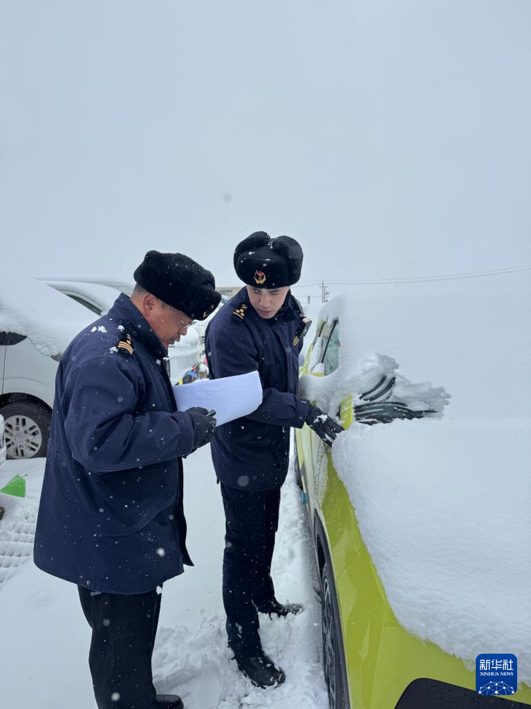 10月28日,日喀則海關關員在里孜口岸查驗出口新能源汽車。(拉薩海關供圖)