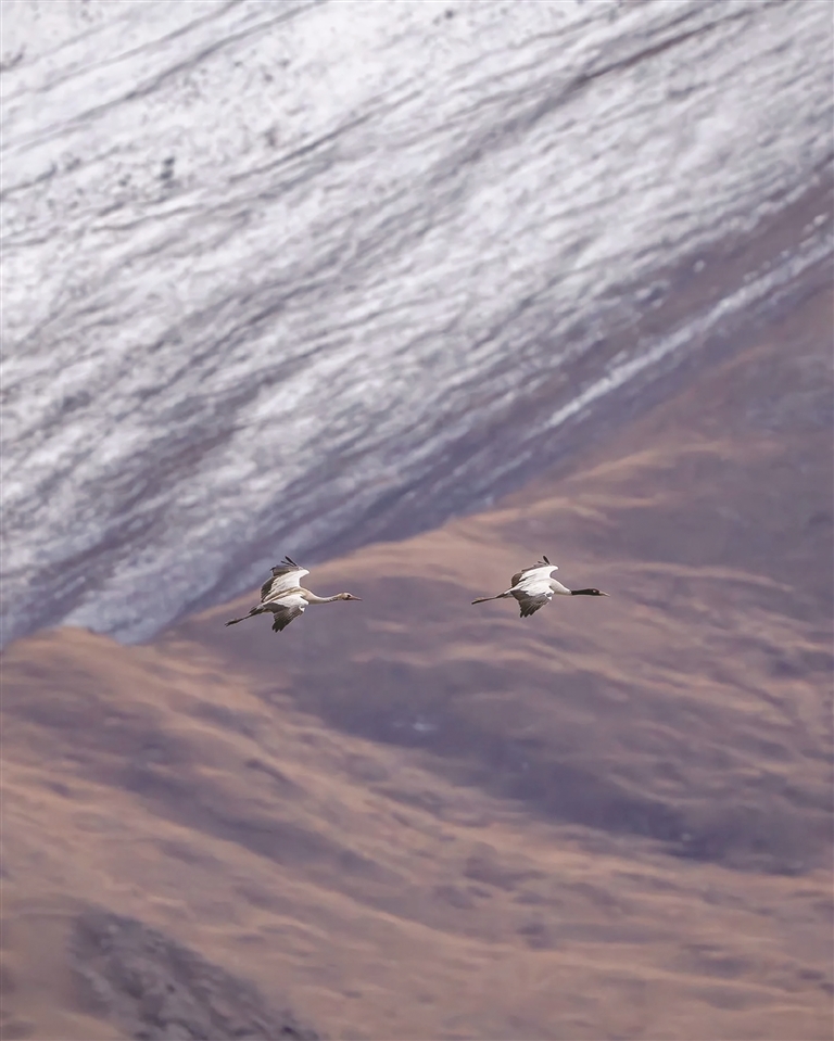 最初巡護時,沒有先進設(shè)備,全靠雙腳丈量、雙眼巡查,餓了啃干糧,冷了裹藏袍。如今保護力度加大,黑頸鶴數(shù)量逐年增長,越來越多村民也加入守護行列,沒人再驚擾這些“高原貴客”?!昂陬i鶴是吉祥象征,保護它們就是保護家園?!?5歲的頓珠次仁鬢角染霜,卻如他守護的老鶴般,初心未改。對他而言,黑頸鶴是“從小熟悉的老朋友”,林周既是自己的家,也是鶴群的家。這份守護,早已超越職責,成為人與自然和諧共生的生動注腳。