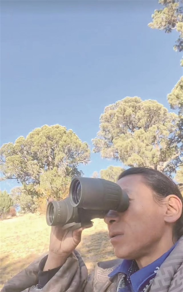 次仁桑珠與山林的羈絆,始于童年。生長在唐古鎮(zhèn)的他,自幼在林間穿梭,父輩扛著工具護林的身影,在他心中種下敬畏自然的種子。十一年前,得知林管站招聘,他毫不猶豫報名,接過了守護綠水青山的接力棒?!澳菚r林子雖有生機,但亂砍濫伐偶有發(fā)生,野生動物少見蹤影?!睉浧鸪跞胄械膱鼍?,他眼中滿是感慨。
