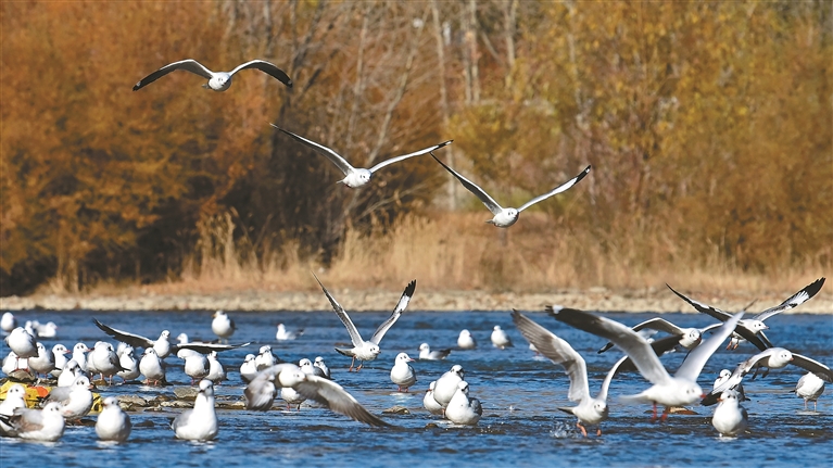 拉薩河畔的候鳥。記者 唐斌 攝
