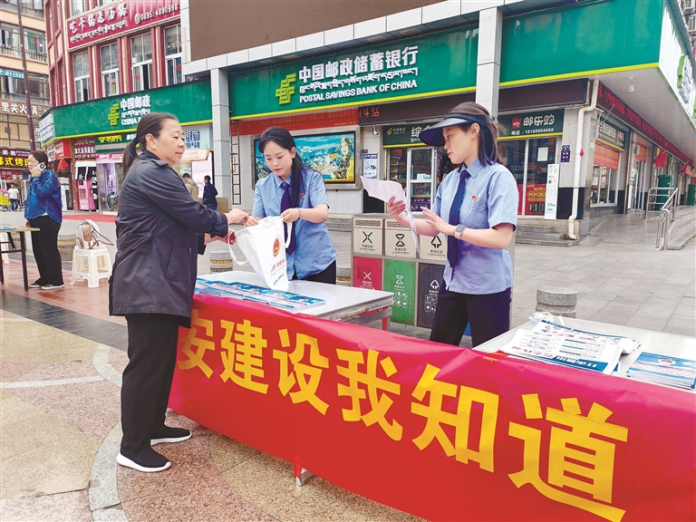 昌都市卡若區(qū)檢察院工作人員在發(fā)放宣傳冊(cè)。記者 貢秋曲措 攝