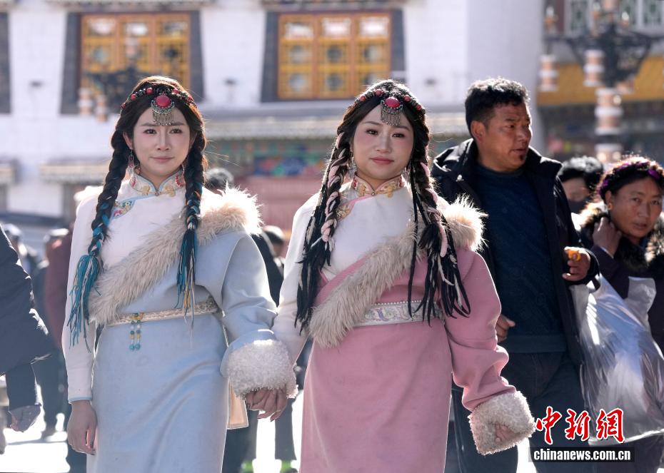12月24日,游客在拉薩市八廓街拍攝藏服寫真。在第八輪“冬游西藏”活動持續(xù)推動下,不少游客選擇在冬季走進西藏,感受雪域高原的獨特魅力。除了免費游覽布達拉宮、羅布林卡等景區(qū),體驗藏服寫真也成為大多數(shù)游客行程中的“必選項”。中新社記者 李林 攝