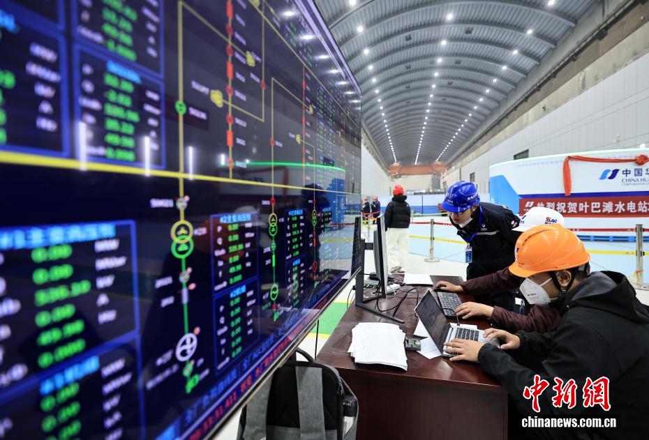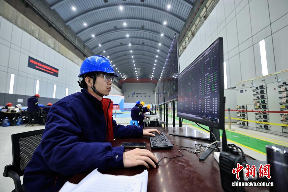 12月27日,中國在建海拔最高雙曲拱壩電站——葉巴灘水電站首批機組正式投產(chǎn)發(fā)電。葉巴灘水電站位于四川省甘孜州白玉縣與西藏自治區(qū)貢覺縣交界的金沙江干流上。水電站總裝機容量224萬千瓦,此次首批投產(chǎn)發(fā)電的機組為4號和3號機組。圖為12月24日,中控室值班人員正開展上位機監(jiān)盤工作。中新社記者 王磊 攝