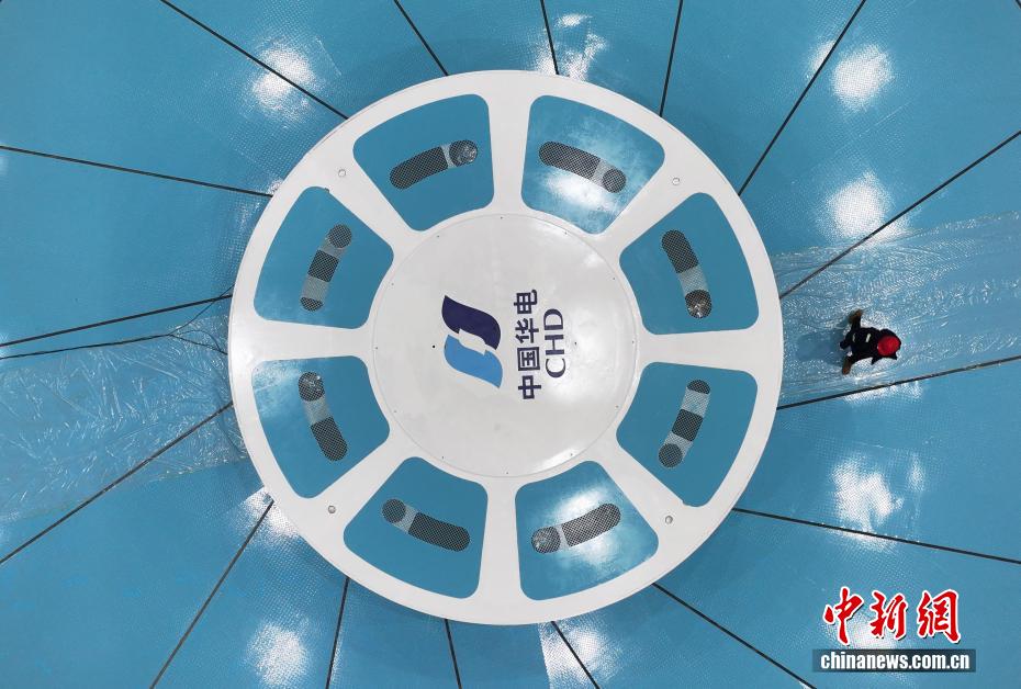 12月27日,中國在建海拔最高雙曲拱壩電站——葉巴灘水電站首批機組正式投產(chǎn)發(fā)電。葉巴灘水電站位于四川省甘孜州白玉縣與西藏自治區(qū)貢覺縣交界的金沙江干流上。水電站總裝機容量224萬千瓦,此次首批投產(chǎn)發(fā)電的機組為4號和3號機組。圖為12月26日,工作人員從4號機組旁經(jīng)過。(無人機照片)中新社記者 王磊 攝