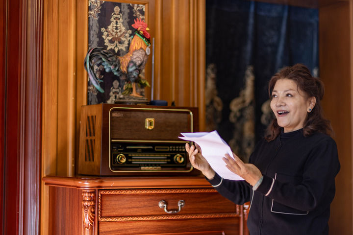 藏族女高音歌唱家巴桑在家中練聲(2025年11月6日攝)。新華社記者 姜帆 攝