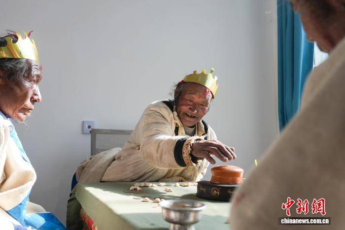 圖為西藏定結(jié)縣郭加鄉(xiāng)切村,農(nóng)村幸福院里,老人們?cè)谕骥蛔印X暣_ 攝