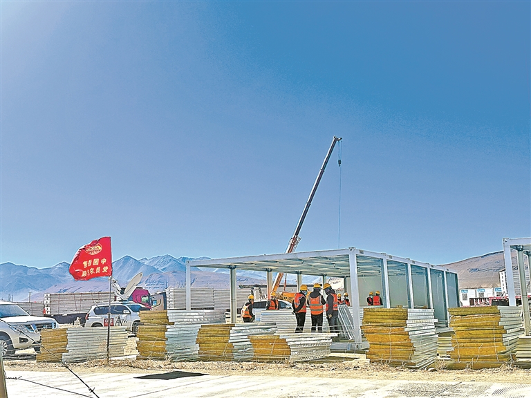 圖為2025年1月10日,定日縣受災最嚴重的長所鄉(xiāng)多個安置點正在組織力量快速搭建活動板房。記者 次旦央吉 攝