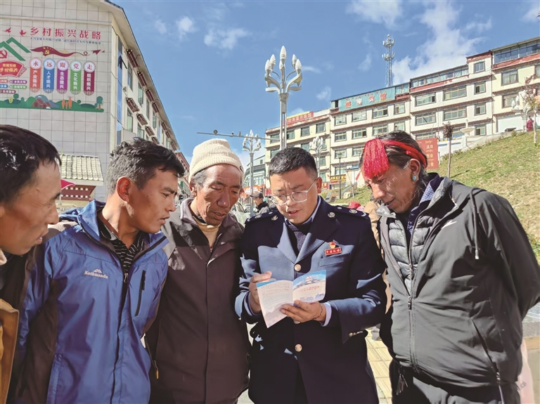 聶拉木縣稅務(wù)局工作人員向企業(yè)講解稅費政策。圖由自治區(qū)稅務(wù)局提供