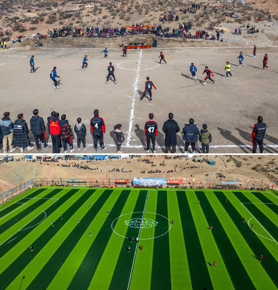 “以前一場比賽下來,球鞋球襪里全是土,但是大家最期待的還是新年前的足球賽?!?021年嘎瑪加永燈培大學畢業(yè)后回到家鄉(xiāng)工作,在一座標準化足球場踢球是他那時最大的心愿。