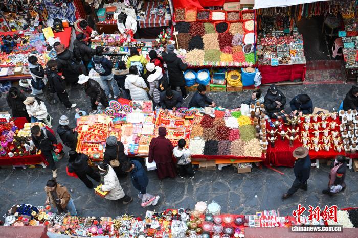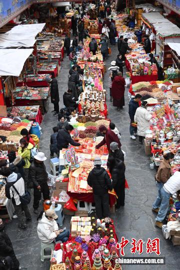 2月9日,隨著春節(jié)、藏歷新年臨近,西藏拉薩市八廓商城等年貨市場人頭攢動。市民忙著挑選酥油花、香布、切瑪盒等傳統(tǒng)年貨,市場內(nèi)購銷兩旺、喜慶熱鬧,古城拉薩處處洋溢著濃厚的節(jié)日氛圍。