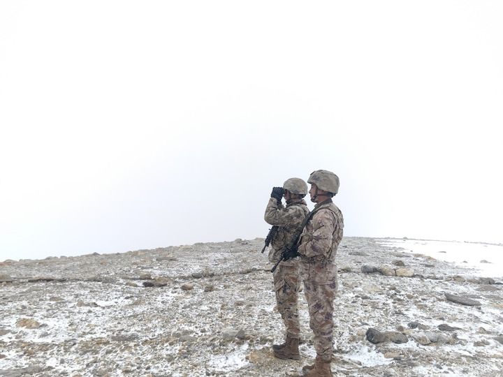 2月15日,西藏軍區(qū)某邊防團5592哨所官兵在觀察地形。新華社發(fā)(沈杰 攝)